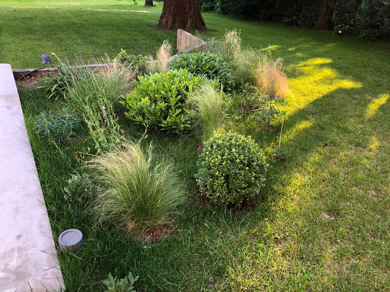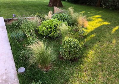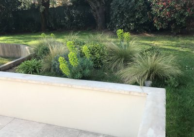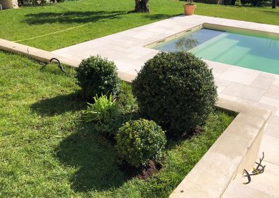 - Deux petits massifs pour mettre en valeur l’arrivée sur les abords de la piscine (pittosporums, lauriers agapanthes)