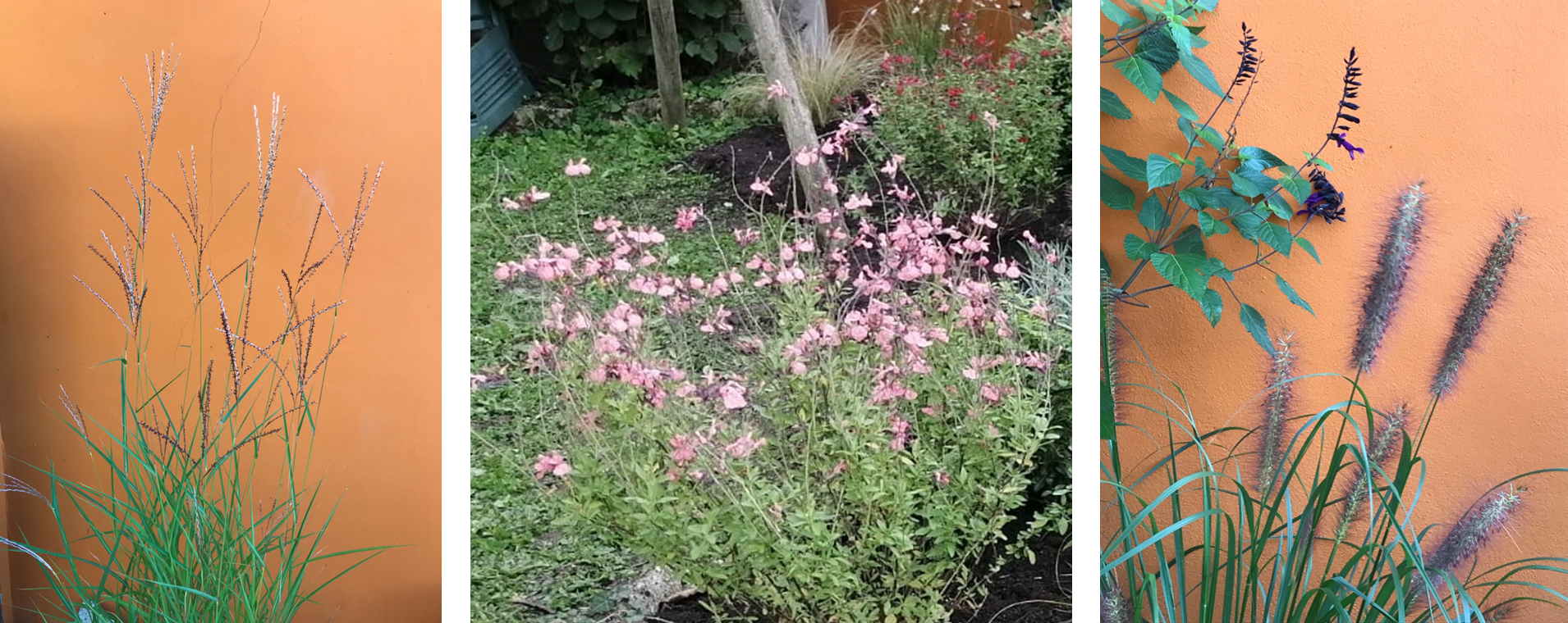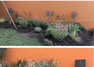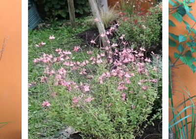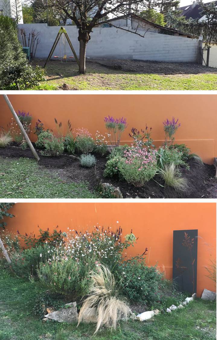 - une autre sur une partie latérale, afin d’habiller un long mur (jasmins, rosiers et Orangers du mexique)